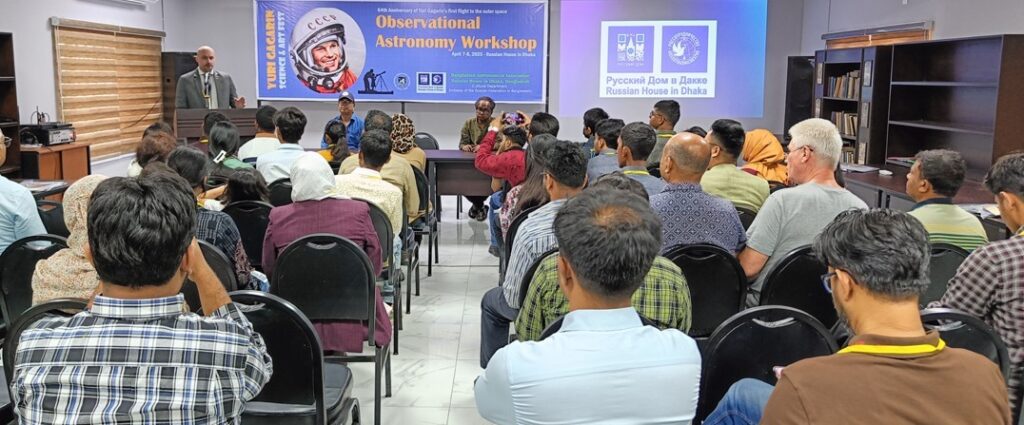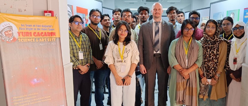 ইউরি গ্যাগারিনের ঐতিহাসিক মহাকাশ যাত্রার ৬৪তম বার্ষিকী উদযাপন উপলক্ষে ঢাকার রাশিয়ান হাউসে গ্যাগারিন বিজ্ঞান ও শিল্প উৎসব আনুষ্ঠানিকভাবে উদ্বোধন করা হয়েছে ৭ এপ্রিল ২০২৫।