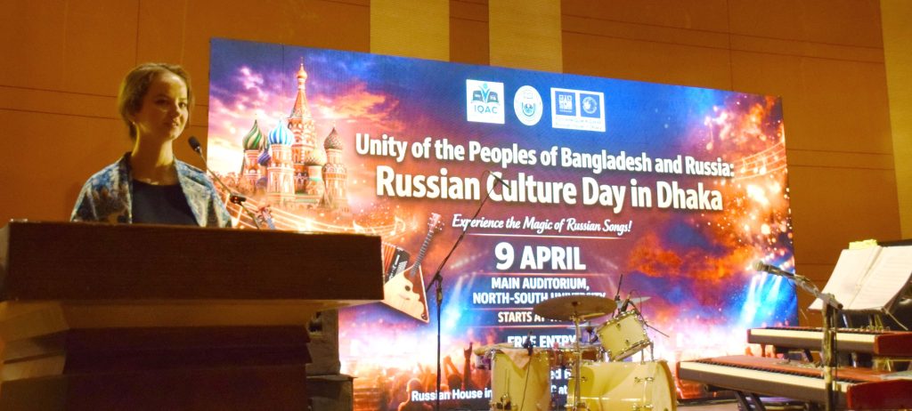 সুর, সংস্কৃতি আর তারুণ্যের প্রাণবন্ত মিলনে মুখর হয়ে উঠেছিল নর্থ সাউথ ইউনিভার্সিটি ক্যাম্পাস। ৯ এপ্রিল ২০২৬ — রাশিয়ান হাউস ইন ঢাকা, ইনস্টিটিউশনাল কোয়ালিটি অ্যাস্যুরেন্স সেল (IQAC) এবং নর্থ সাউথ ইউনিভার্সিটির যৌথ উদ্যোগে আয়োজিত এই বিশেষ সঙ্গীত সন্ধ্যা রূপ নেয় এক অনন্য সাংস্কৃতিক উৎসবে।